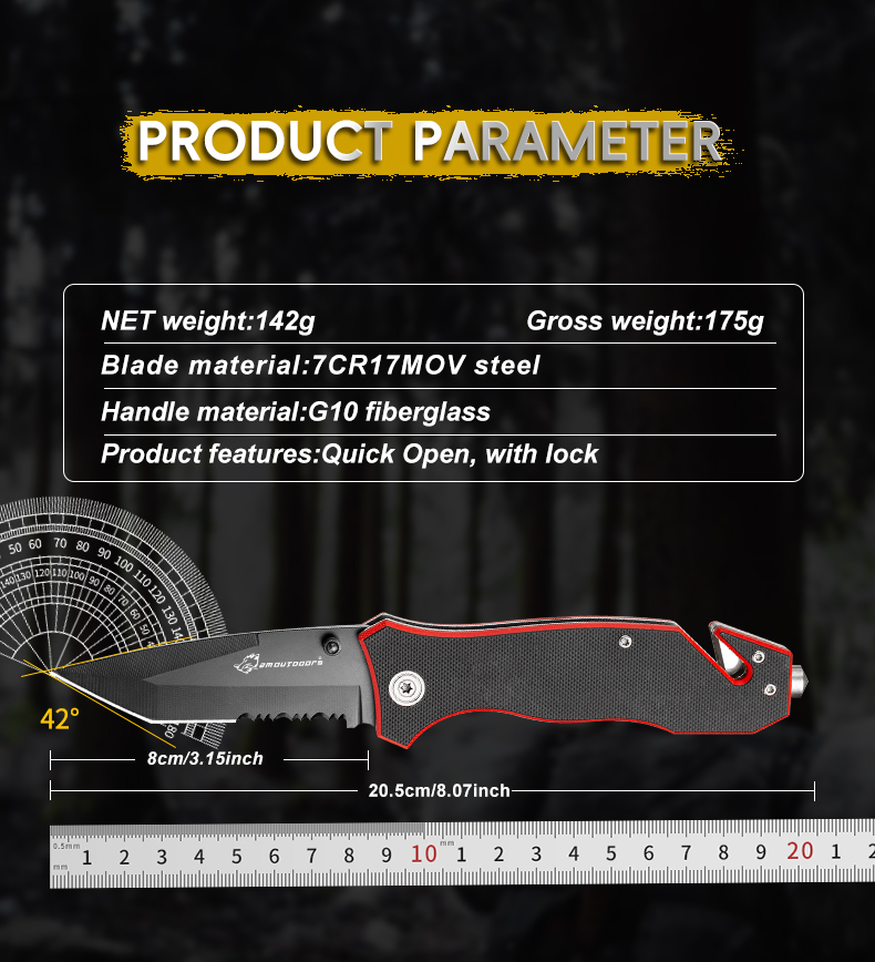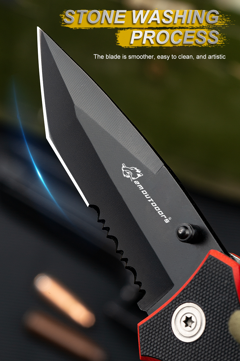 Outdoor pocket folding knife with locking mechanism, 7Cr17Mov high hardness stainless steel knife, G10 handle, can be used for outdoor wilderness survival, mountaineering, hiking