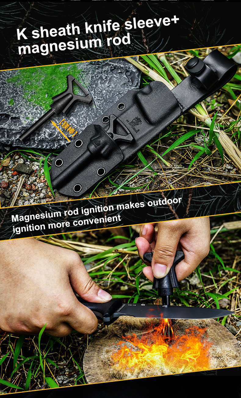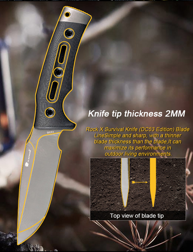 Outdoor Tactical Knife Wilderness Survival Knife Adventure Knife Prey Handling Knife Locke DC53 Steel High Hardness Straight Knife Carry Convenient Knife Multi-Purpose Knife Camping Knife