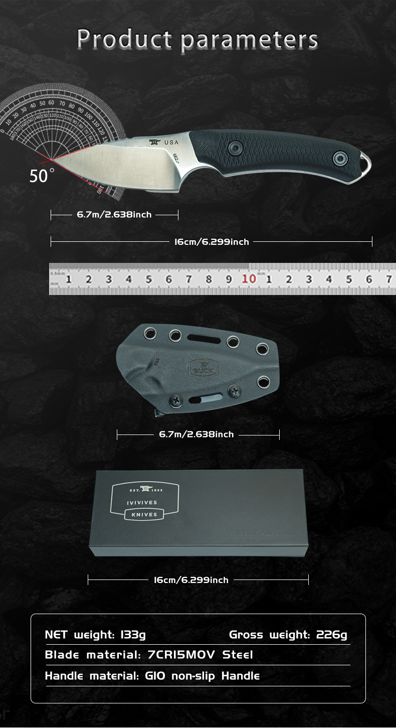 【G10 Handle】This fixed blade hunting knife has a black G10 handle, which is designed for superior hand control and comfort, and is non-slip when used and not easy to break.