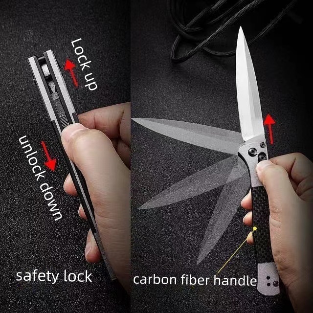 The combination of carbon fiber and aluminum creates a handle that is both lightweight and highly impact-resistant. It feels comfortable in hand during extended use and offers a solid grip under all conditions. Whether you're using it as an outdoor knife or folding hunting knife, the handle’s design enhances precision and fatigue resistance, giving you the balance you need in every task.