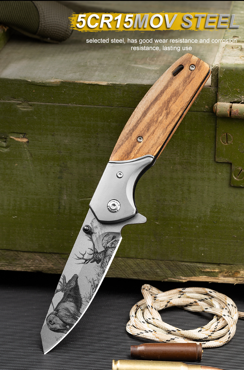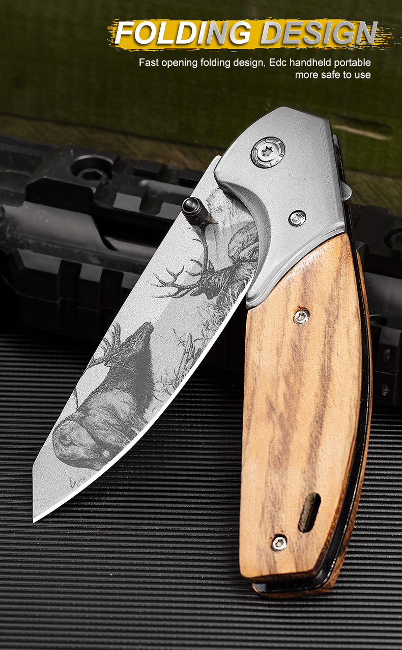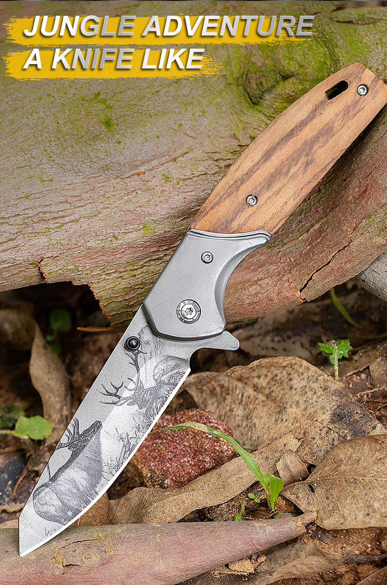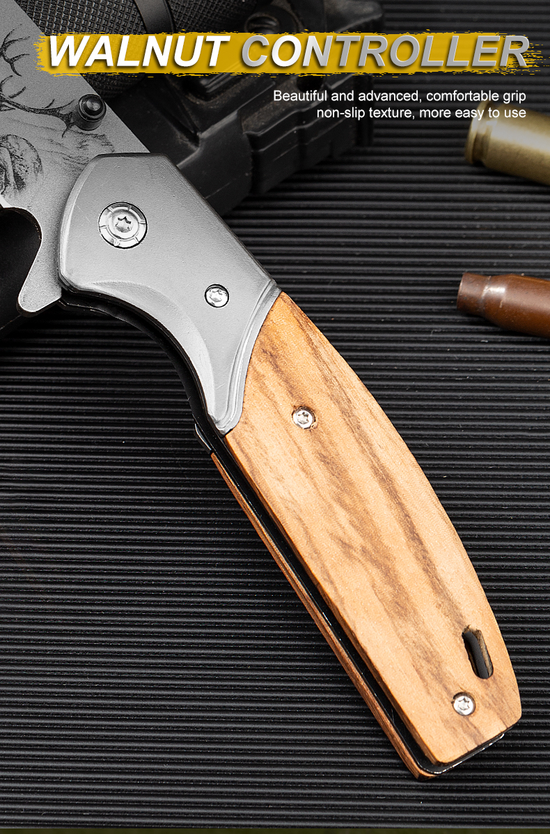 1PC, Elk Tactical Folding Pocket Knife With Stainless Steel Blade And Wooden Handle For Survival Outdoor Camping Hiking EDC Tools