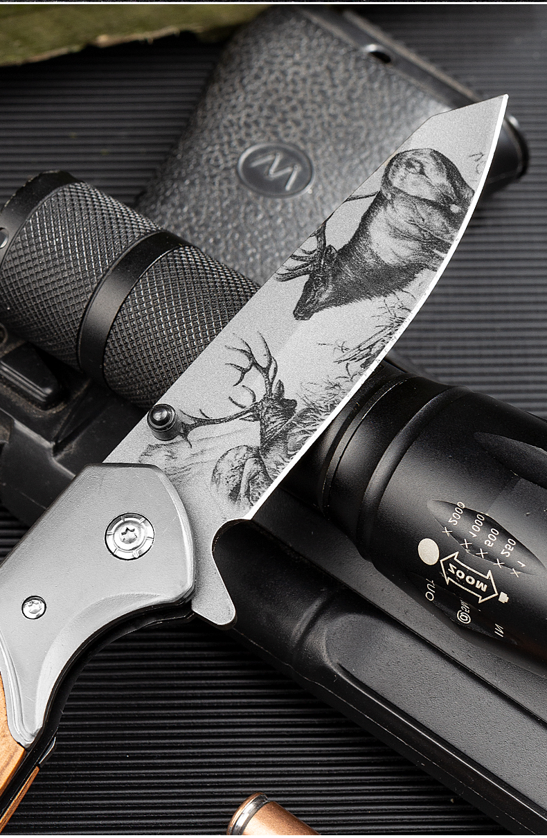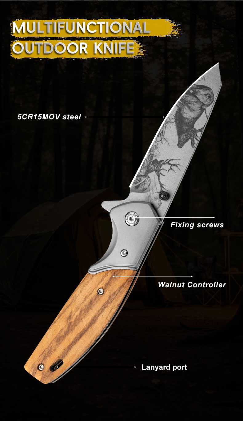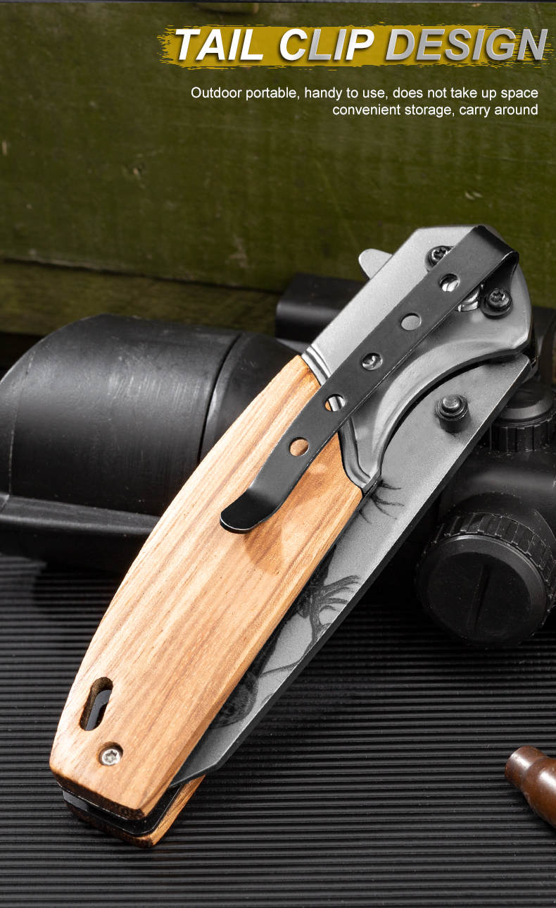 1PC, Elk Tactical Folding Pocket Knife With Stainless Steel Blade And Wooden Handle For Survival Outdoor Camping Hiking EDC Tools