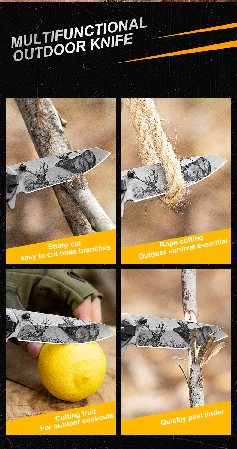 This knife is a reliable performer for camping, hunting, and emergency situations. As a dependable outdoor knife, it easily handles rope cutting, wood shaving, or food prep. Its folding design makes it a practical edc folding knife for everyday carry. Sharp, compact, and multifunctional, it's truly a best outdoor knife that adapts to your lifestyle. With this knife, you’re equipped for both everyday needs and extreme scenarios.