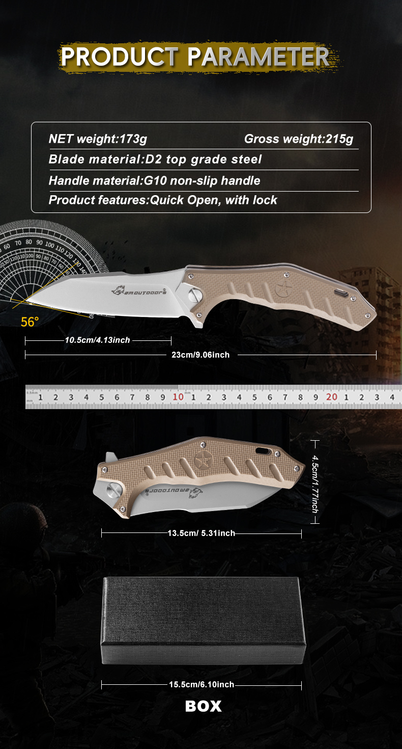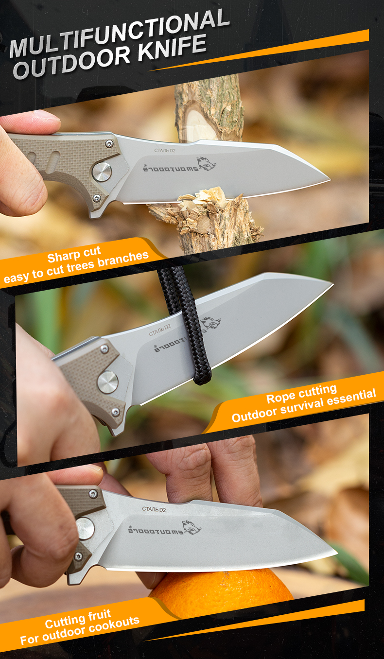 Folding Knife, Pocket Knife, EDC Multi-function Outdoor Tool Knife, D2 Special Steel, G10 Non-slip Handle, For Fishing, Hiking, Survival, Gifts For Men And Women