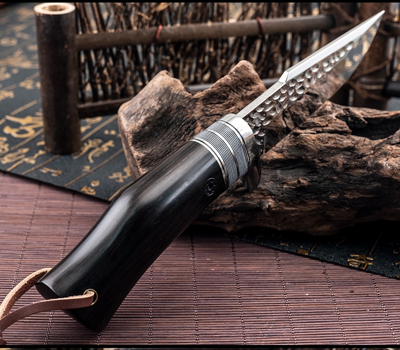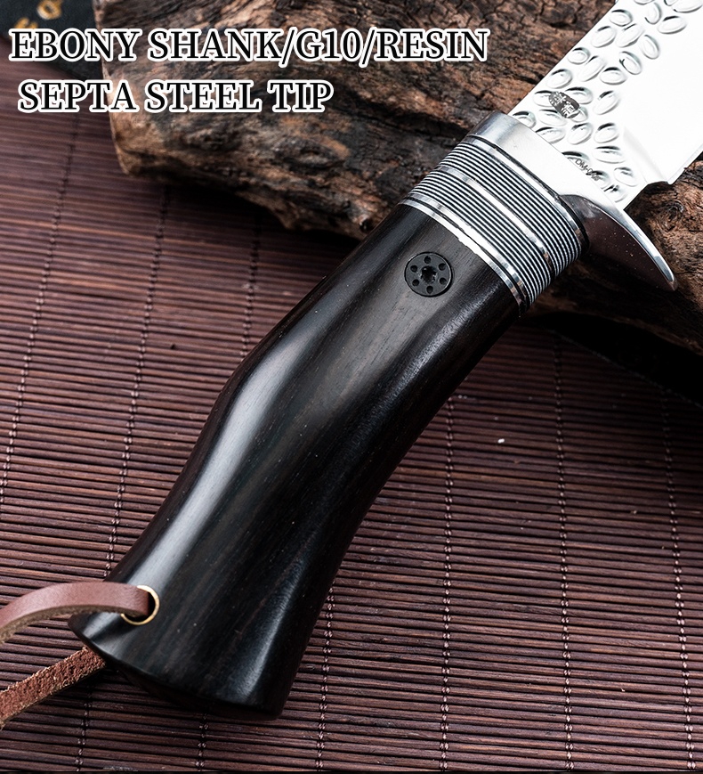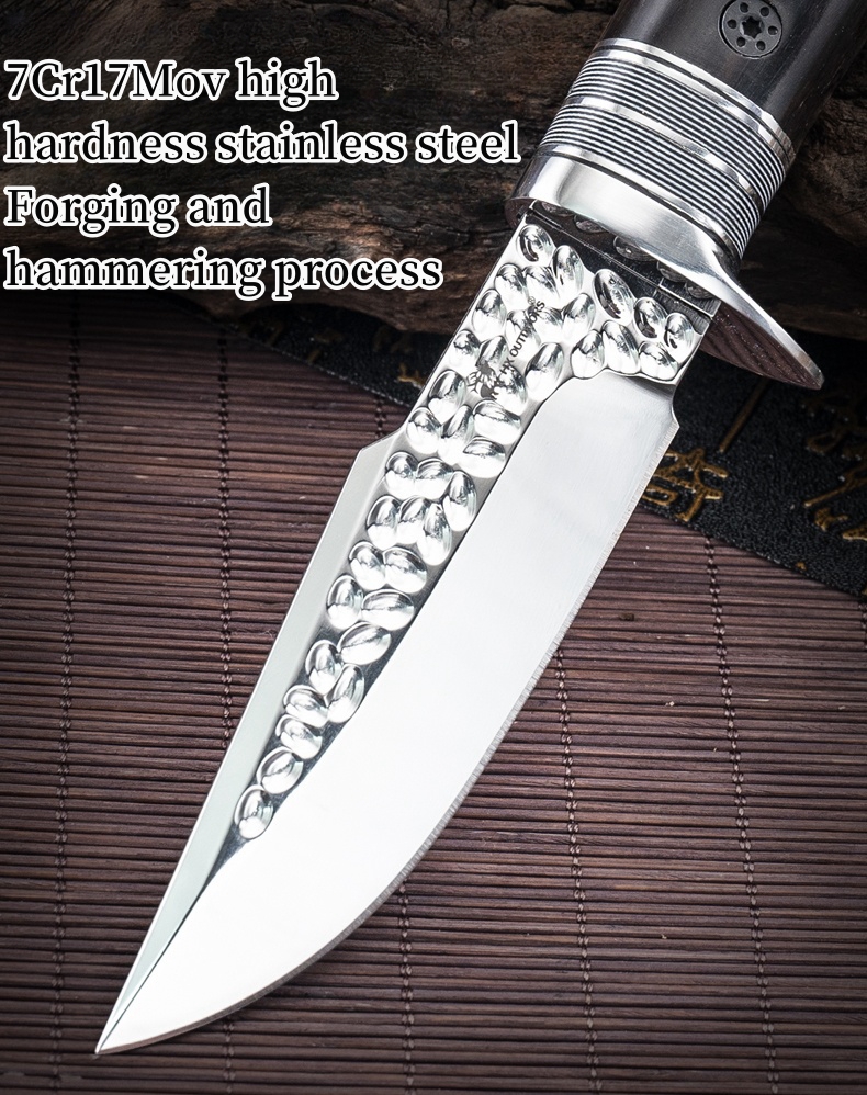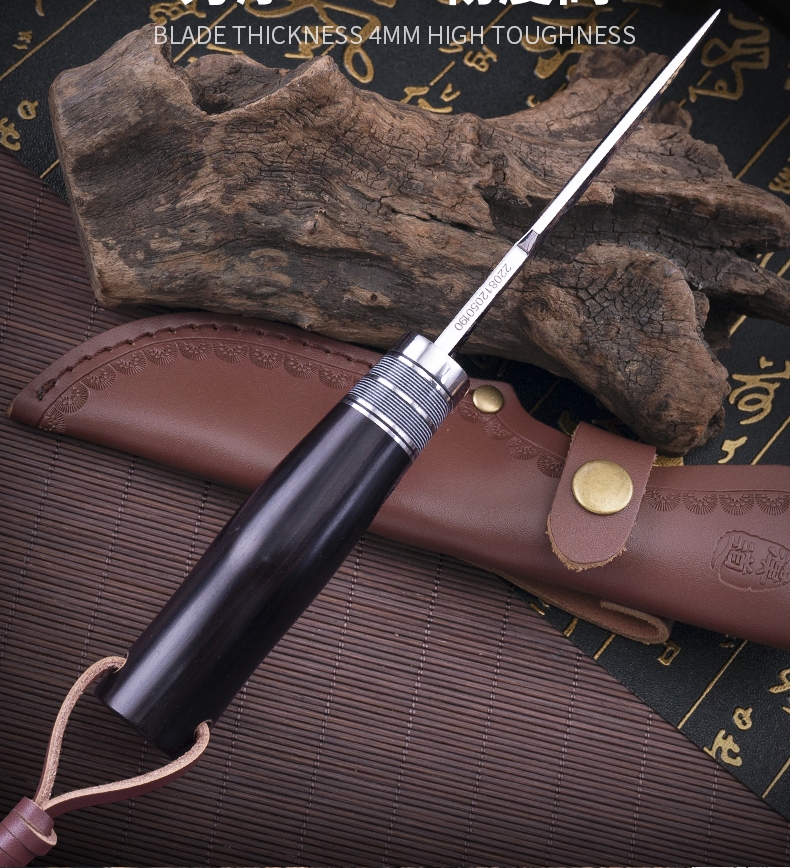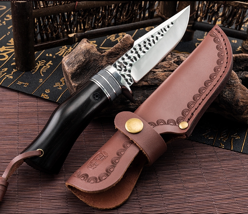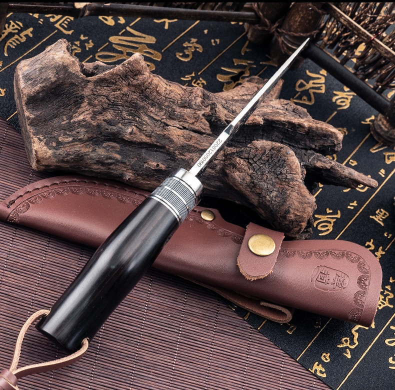 1PC HX OUTDOORS Straight Knife, EDC Multi-function Outdoor Exploration Tool Knife, Pocket Knife With Cowhide Knife Cover, 7CR17MOV High Hardness Stainless Steel Blade, Ebony Handle, CNC Fine Grinding Process, Top Quality, The Best Choice For Gifts